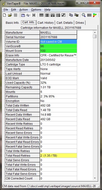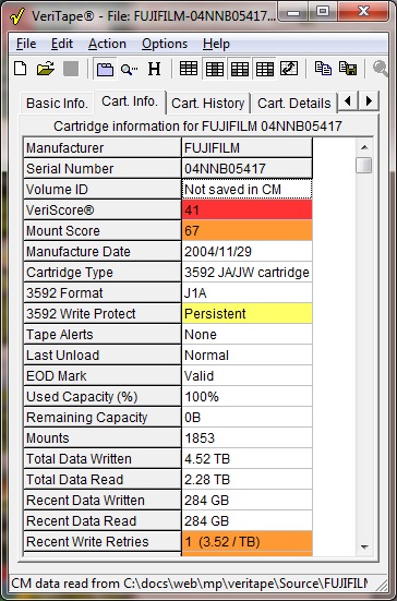 3592 tapes can be written in several formats. In addition to showing the cartridge type, VeriTape also shows the recording format.